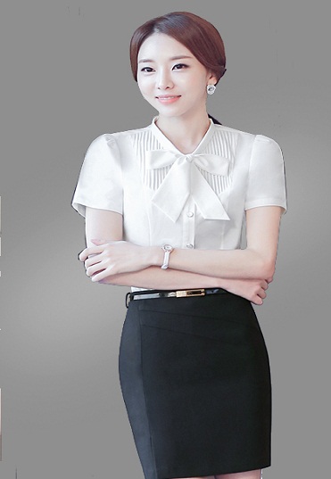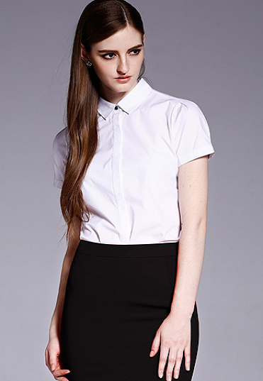 | 经典白色短袖女衬衫,经典翻领,结合撇角领,时尚简洁,便于搭配。不失干练气质。袖子立体版 |