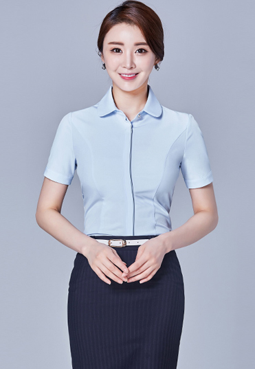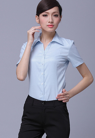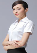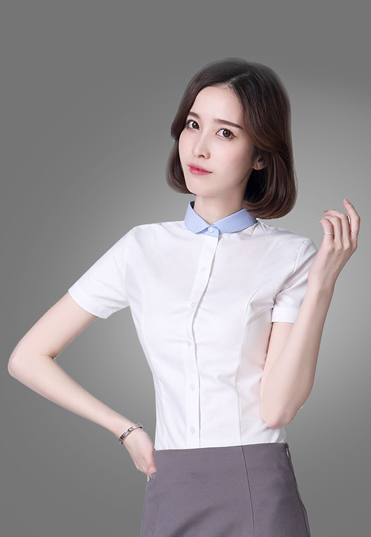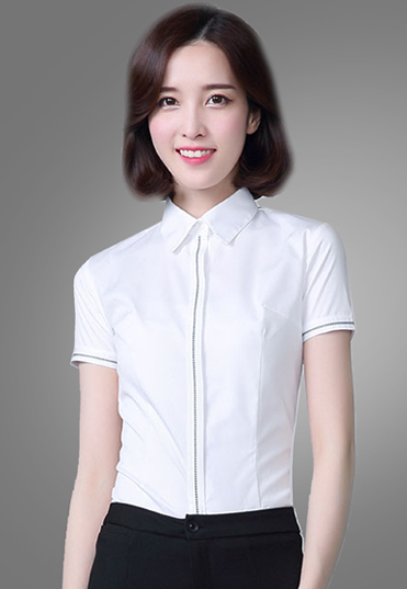 | 女士短袖衬衫定制,正常款式,适合各种体型的女士,内八字领衬衫领口设计,更显秀气,直排白 |