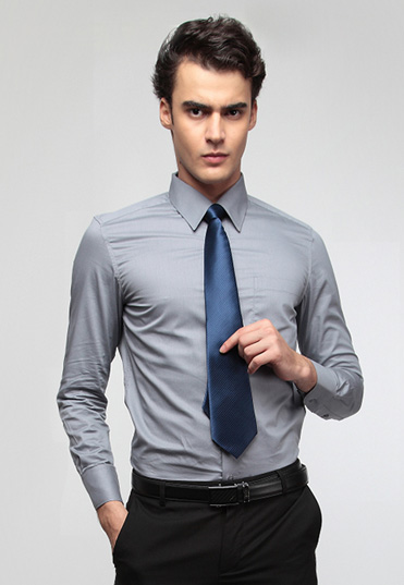 | 浅灰色商务衬衫,干净整洁。采用优质涤棉混纺面料,具有良好透气性,不易起皱,固色性强。采 |