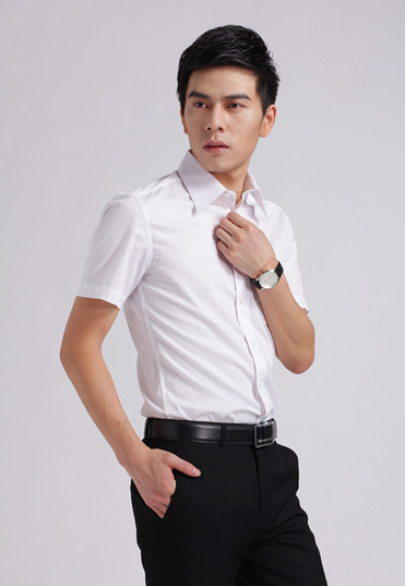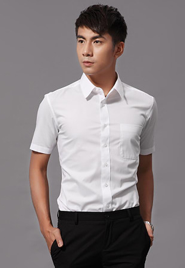 | 白色男士短袖衬衫定制,没有过多修饰,却体现稳重、成熟的男士魅力,外八字领设计,职业化衬 |