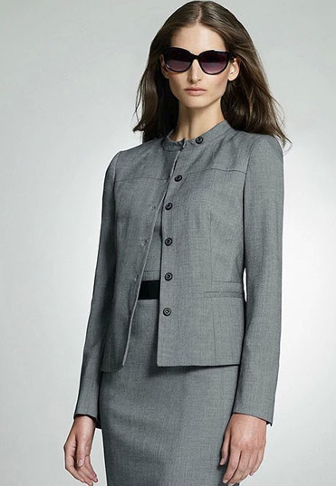 | 女士职业装定制,成熟知性的职场女性美;西服领设计搭配中山领白色衬衫,不缩水、易打理,展 |