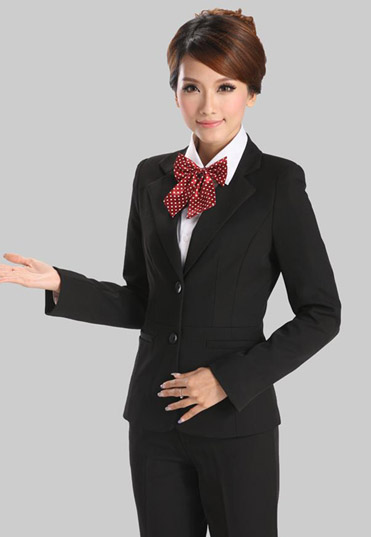 | 女士职业装定制,修身束腰的设计,柔软的面料,搭配白色蝴蝶结衬衣,是整套职业装的点睛之笔 |