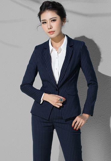 | 女士职业装定制17,一粒扣修身版型西装,经典翻领,时尚简洁。优雅细条纹面料,显瘦独特;立 |
